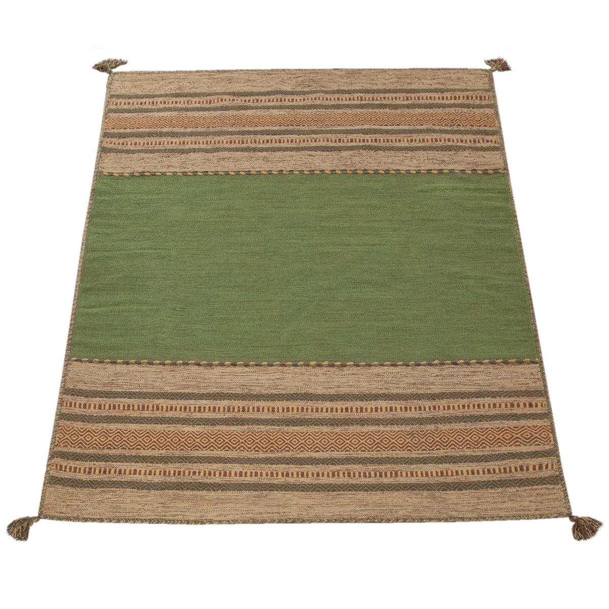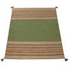 gemütlichkeit und gute Laune - zwei Dinge, die dieser Kelim-Teppich garantiert mit in Ihre vier Wände bringt! Die Farbkombination aus Grün, Beige, Orange und Braun erinnert an verspielte Vintage-Stücke, während 100 % Baumwolle für eine natürliche Ausstrahlung sorgen. Eine weitere Besonderheit: Das spezielle Webverfahren, das beim Kelim zum Einsatz kommt, macht die Oberfläche robust und gleichzeitig pflegeleicht. Unser Tipp: Lassen Sie sich von dem außergewöhnlichen Design mitreißen und spielen Sie mit den Kontrasten zwischen frischem Grün und warmem Orange. Helle Holzfarben wie Eiche oder Buche ergänzen den natürlichen Look des Teppichs perfekt und schaffen eine urgemütliche Atmosphäre.