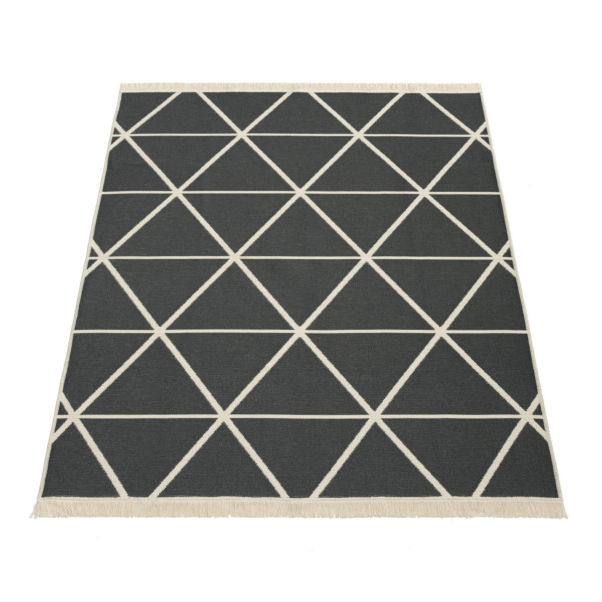 Diese modernen Indoor Kilim-Teppiche haben eine schicke geometrische Musterung im skandinavischen Stil und bezaubern nicht nur in Sachen Farbe mit ihrer Vielseitigkeit. Die Vorleger sind praktische Wendeteppiche und können nach Lust und Laune gedreht werden. Eine Seite der edlen Teppiche überzeugt in Anthrazit, Grau oder Pink mit gelbfarbenen Musterungen. Auf der anderen Seite erwartet Sie dieselbe Farbkombination, wobei das Gelb in diesem Fall mehr im Vordergrund steht. Die Wohnaccessoires fügen sich harmonisch in Ihr Zuhause ein – ideal für den Eingangs-, Flur- und Wohnbereich. Das pflegeleichten Flachgewebe bestehen zu 96 % aus Baumwolle und 4 % Polyester und sind daher sehr verschleißfest und leicht zu reinigen, sollte Ihnen zuhause mal der ein oder andere Fleck entstehen. Neben ihrer ohnehin robusten Struktur, können sie ganz einfach mit in die Waschmaschine gegeben werden, können sich dabei jedoch leicht verziehen. * *Nach dem Waschen kann die Ware bis zu 5 % einziehen.