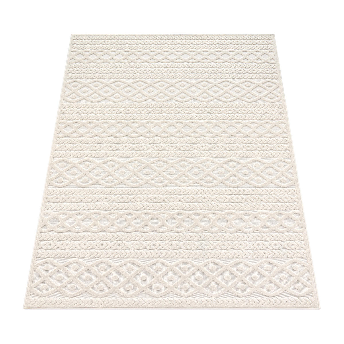 Diese schicken Vorleger begeistern mit ihrem einfarbigen Design, das zwar dezent, aber dennoch wirkungsvoll daherkommt und mit dem spannenden 3D-Effekt alle Blicke auf sich zieht. Das Beste an den Teppichen? Als In- und Outdoor-Teppiche können die schicken Wohnaccessoires sowohl drinnen als auch draußen platziert werden, ganz so wie Sie es wünschen. Die Farbgestaltung in stilsicherem Creme sorgt ohnehin dafür, dass sich die Teppiche überall problemlos einfügen, während das geometrische Muster gleichzeitig etwas für das Auge und die Füße bietet. Damit Sie sich keine Sorgen um die helle Farbgestaltung der Kurzflor-Teppiche machen müssen und die Teppiche auf für ihren Einsatz im Freien gewappnet sind, haben wir uns bei der Herstellung auf robustes Polypropylen verlassen, das vor allem wegen seiner strapazierfähigen und pflegeleichten Eigenschaften bekannt ist. Außerdem sind die hochwertigen Teppiche nach STANDARD 100 by OEKO-TEX® geprüft und damit schadstofffrei.