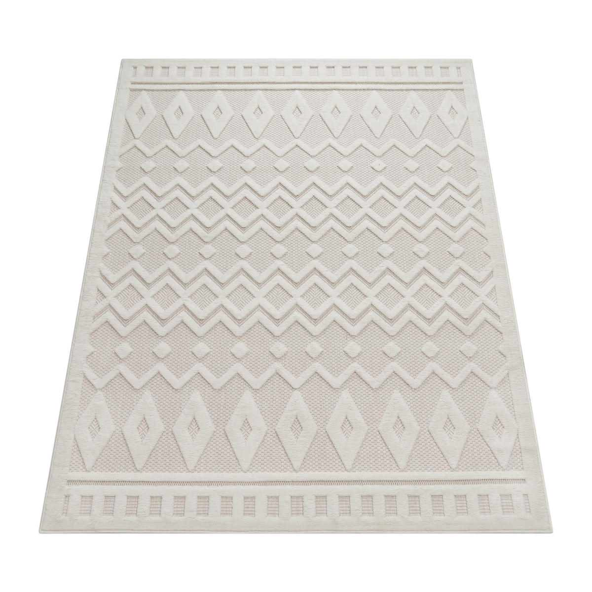 Diese zauberhaften In- und Outdoor Teppiche bringen angenehme Entschleunigung in Ihre vier Wände und schaffen pure Entspannung. Mit ihren geometrischen Mustern, die durch den aufregenden 3D-Effekt noch einmal besonders hervorgehoben werden und der großen Auswahl an Farben, fügen sich die Wohnwunder unaufdringlich in Ihre Einrichtung ein und hauchen im modischen Boho-Look jedem Wohnbereich neues Leben ein. Wahlweise in Anthrazit, Creme, Grau, Türkis, Gelb oder Pink erhältlich, ist für jeden Geschmack das richtige Modell dabei. Egal, ob Küche, Flur oder sogar Balkon oder Terrasse – diese Teppiche finden überall einen Platz! Genauso unkompliziert wie ihre Optik ist auch die Handhabe der schicken Kurzflore. Aus dem nahezu unverwüstlichen Material Polypropylen gewoben, fühlen sie sich auch im Außenbereich pudelwohl und überstehen in der Küche oder dem Wohnzimmer mühelos jede alltägliche Verschmutzung. Dank der strapazierfähigen Oberfläche lassen sich die Teppiche außerdem kinderleicht reinigen, kleine Missgeschicke sind so in Windeseile wieder vergessen – vorbei sind die Tage der komplizierten Teppichreinigung. Darüber hinaus sind die Teppiche nach STANDARD 100 by OEKO-TEX® Richtlinien schadstofffrei und somit gesundheitlich unbedenklich.