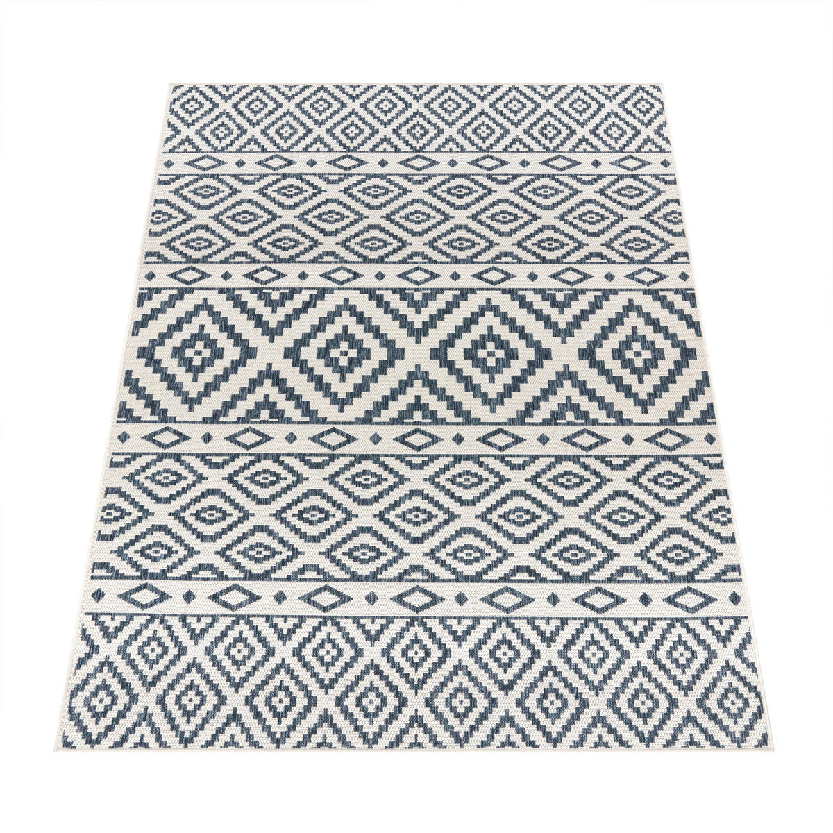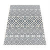 Verleihen Sie Ihrem Balkon oder Ihrer Terrasse einen atemberaubenden Hauch von skandinavischem Stil: Rustikal und doch modern, verbindet dieser trendige Teppich für den Innen- und Außenbereich auf eindrucksvolle Weise trendige, minimalistische Farben und organisches skandinavisches Design. Der monochrome Schwarz-Weiß-Kontrast wirkt bewusst unaufdringlich und minimalistisch, während das authentische Rautenmuster einen Hauch von nordischer Ruhe und Gemütlichkeit in Ihren Außenbereich bringt. Genießen Sie die warmen Monate in einer außergewöhnlichen Atmosphäre! Damit Sie lange Freude an dem ganz besonderen Esprit haben und das flachgewebte Meisterwerk auch bei schlechtem Wetter ruhig auf Balkon oder Terrasse liegen lassen können, verwenden wir für die Herstellung des Teppichs nur robuste und vor allem wetterfeste Materialien. Das Garn aus 100% gewebtem Polypropylen ist erstaunlich pflegeleicht und einfach zu handhaben. Auch um Schadstoffe müssen Sie sich keine Sorgen machen, das Prüfsiegel STANDARD 100 by OEKO-TEX® garantiert schadstofffreien Komfort.