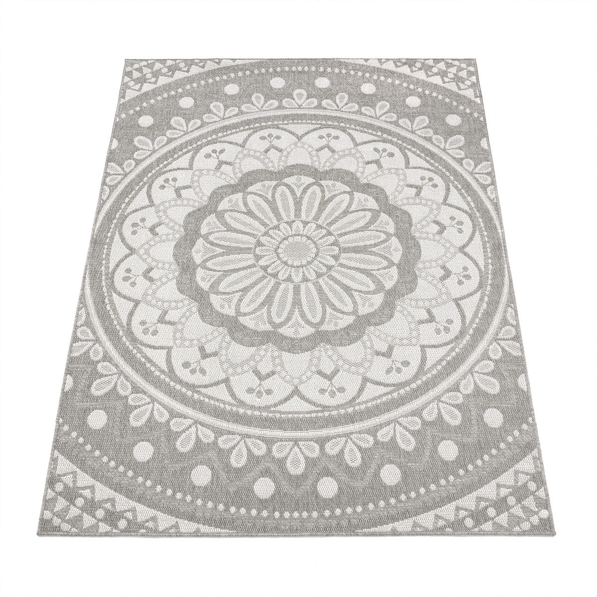 Diese formschönen Outdoor-Teppiche beweisen, dass es kinderleicht ist, jeden kargen Fußboden einer Terrasse oder eines Balkons in eine mediterrane Wohlfühloase zu verwandeln. Die runden Meisterwerke kommen in den aufregenden Farben Beige, Apricot, Türkis und Grau daher und sind die perfekte Mischung aus modern und mediterran. Das verspielte, spitzenähnliche Muster betont die runde Erscheinung der Teppiche und holt die Sonne des Mittelmeers als Mittelpunkt und Ergänzung Ihrer Terrassenmöbel in Ihren Außenbereich. Die qualitativen Flachgewebe-Teppiche sehen allerdings nicht nur fantastisch aus, sie überzeugen auch mit ihrer pflegeleichten Handhabe, die wie für den Einsatz im Freien gemacht ist. Natürlich sollten Sie Ihr neues Lieblingsaccessoire nicht im Starkregen draußen liegen lassen, aber ansonsten steht dem Einsatz im Freien nichts im Wege, denn Sonne kann den brillanten Farben und dem Material aus 100 % Polypropylen nichts anhaben. Zusätzlich dazu sind die Teppiche nach den STANDARD 100 by OEKO-TEX® Richtlinien getestet und damit schadstofffrei.