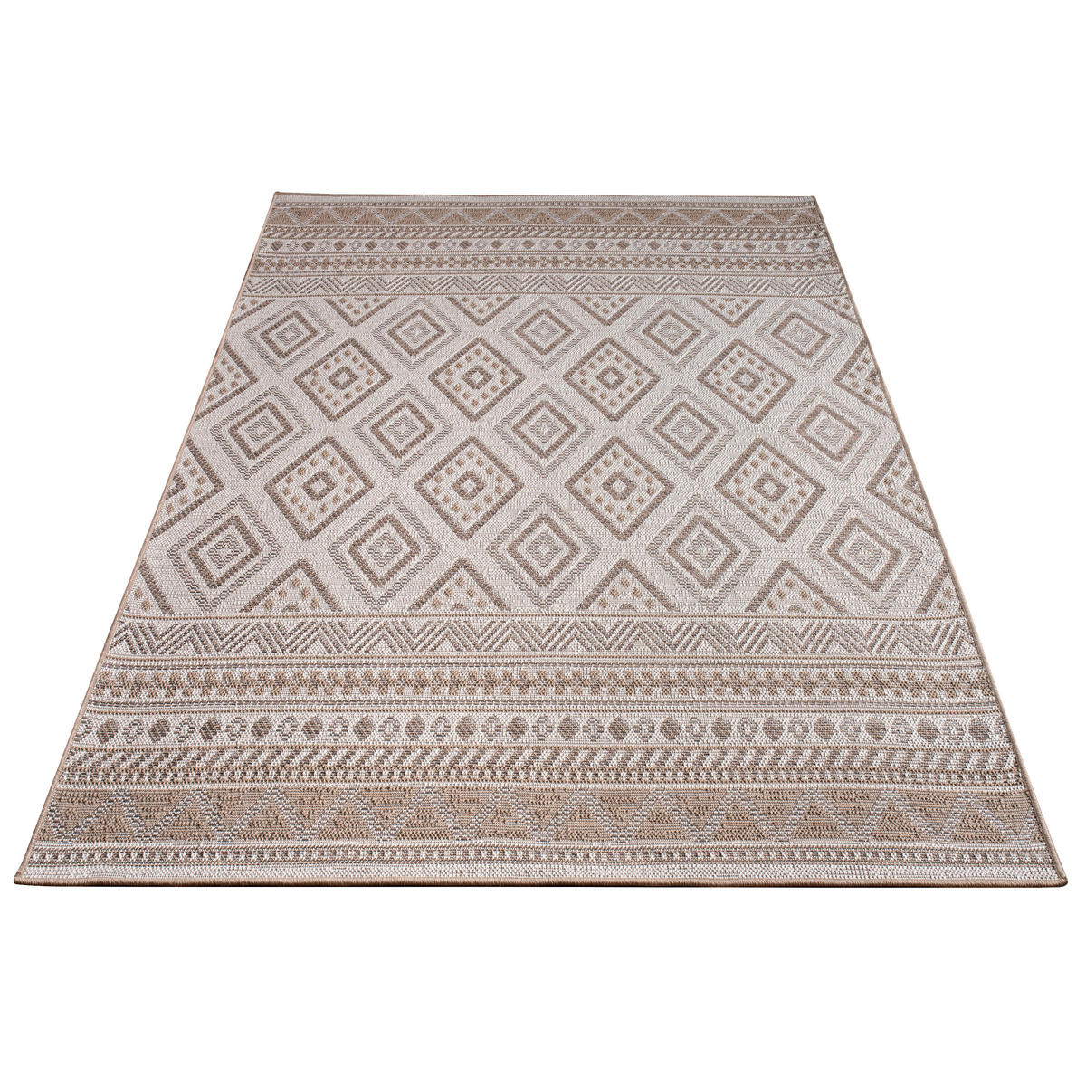 Über guten Geschmack lässt sich nicht nur bekanntlich streiten, er lässt sich jetzt auch ganz einfach auf den Boden legen! Mit diesen Flachgewebe-Teppichen kombinieren Sie ein klassisches Rautenmuster in frischem, verspieltem Stil mit hellen, offenen Farben aus leichten Beige und Brauntönen. Diese Verbindung aus Skandi-Look und Boho-Schick passt problemlos zu jedem Mobiliar, ganz egal, ob Sie einen urig gemütlichen, oder einen modern minimalistischen Einrichtungsstil bevorzugen. Diese Wohnwunder machen in Ihrem Wohnzimmer ebenso eine gute Figur, wie auf dem Balkon oder der Terrasse, denn als wahre Alleskönner sehen sie überall einfach gut aus. Geschmäcker ändern sich, unsere Teppiche bleiben! Konzipiert für den Innen- und Außenbereich sind sie nicht nur den täglichen Anforderungen auch viel genutzter Räume gewachsen, dank ihrer Widerstandsfähigkeit werden sie auch mit der Außenwelt spielend fertig und damit Sie sich, egal wo bedenkenlos an ihrem neuen Lieblingsstück erfreuen können, sind sie außerdem nach STANDARD 100 by OEKO-TEX® völlig schadstofffrei. Das verwendete Material Polypropylen ist außerdem sehr unkompliziert in der Handhabe und einfach zu reinigen.