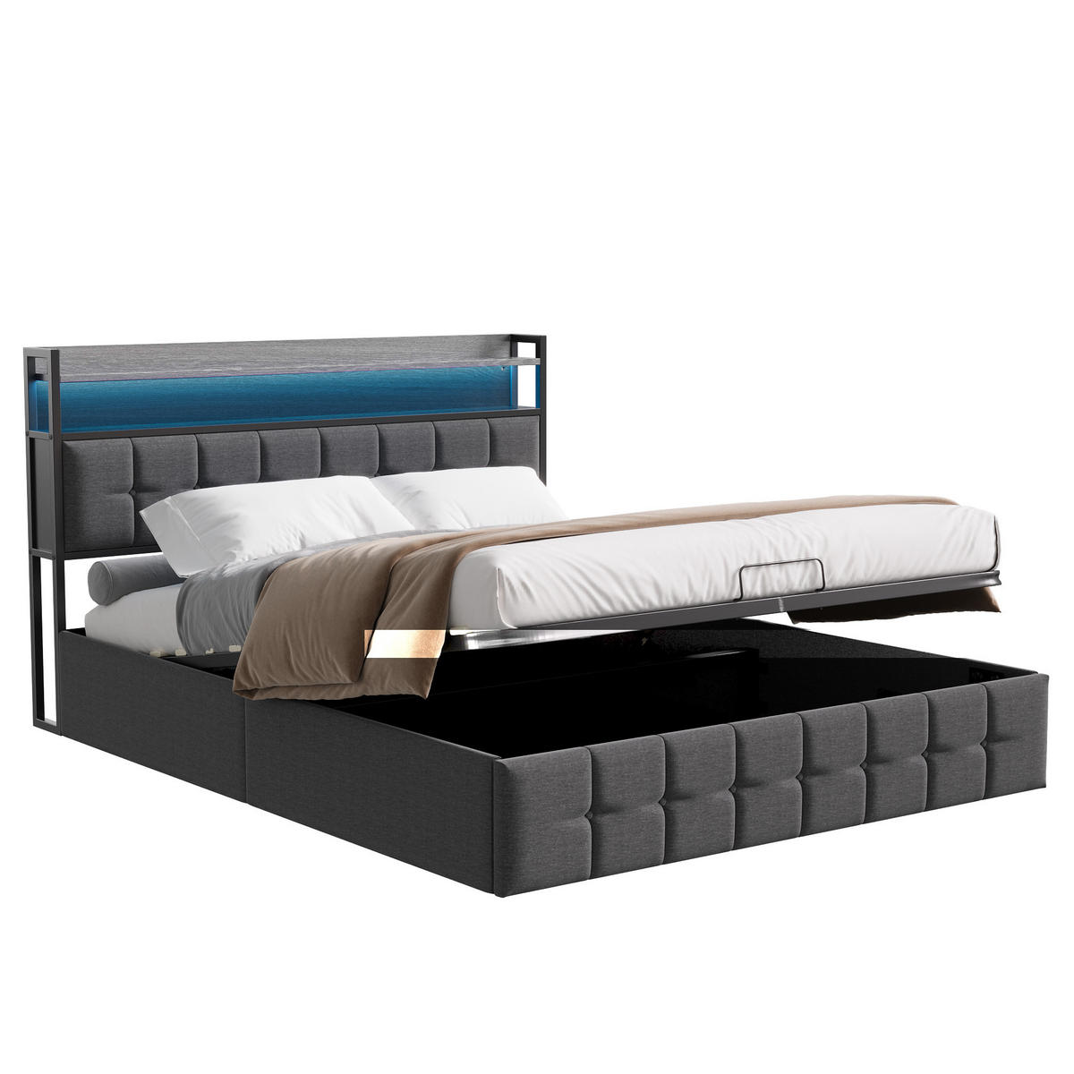 - Eingebaute Ladeanschlüsse, Laden Sie Ihre Geräte direkt am Bett.
