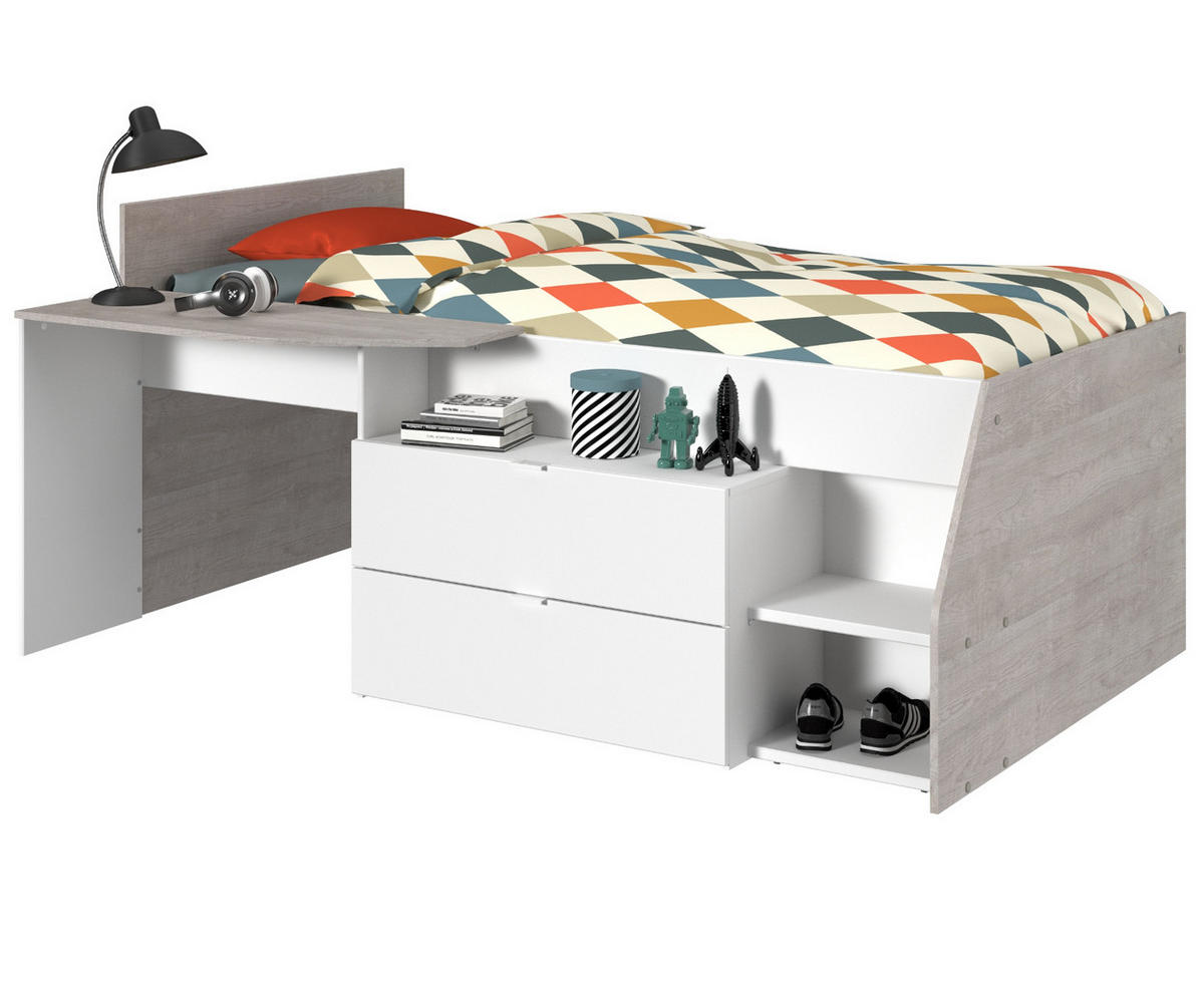 HOCHBETT Milky 1 in Weiß und Grey Loft 90 x 200 cm mit Lattenrost und Matratze