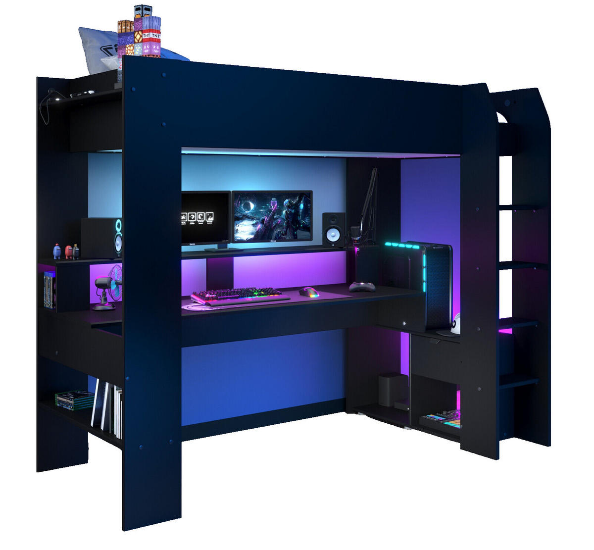Parisot Meuble HOCHBETT Jugendzimmer mit Schreibtisch Bett 90x200 cm inkl. LED
