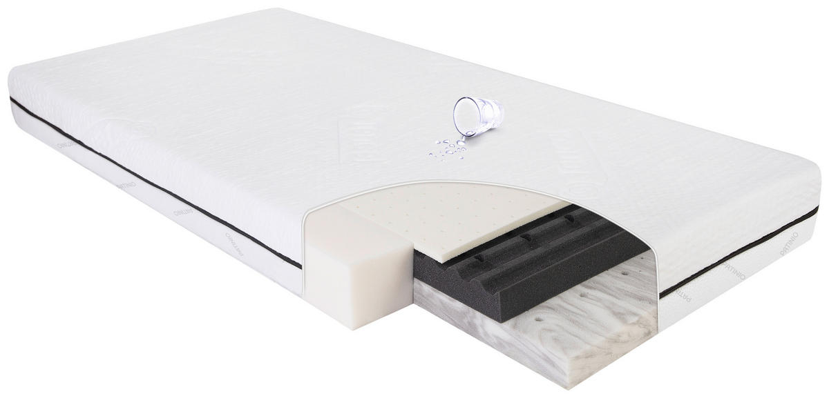 Latex- sowie Polyurethanschaumkern schafft vollendete Behaglichkeit mit hygienischen und geräuscharmen Eigenschaften. Die Schlafunterlage besitzt einen funktionalen Härtegrad und schafft so ausgewogene Unterstützung.