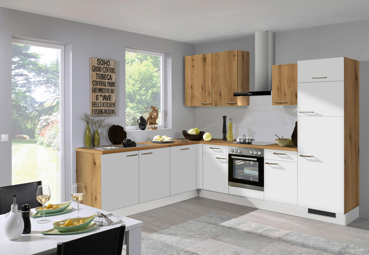 ECKKÜCHE 245/285 cm  in Weiß, Eichefarben  - Eichefarben/Weiß, KONVENTIONELL, Holzwerkstoff (245/285cm) - PinoPino