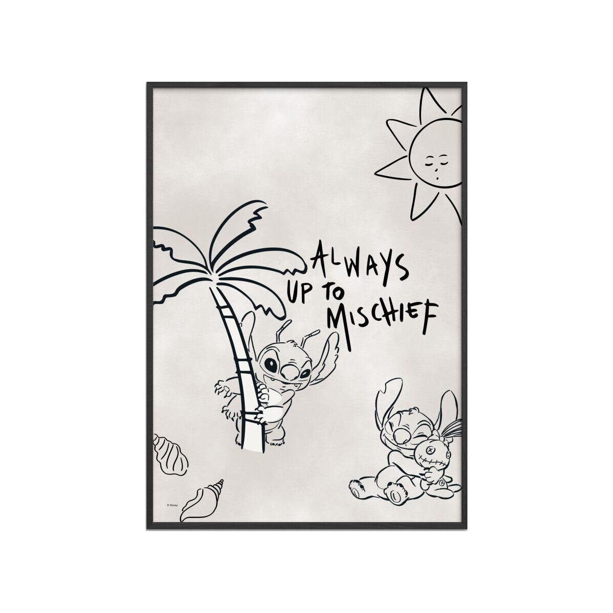POSTER mit Rahmen Disney - Disney - Stitch - Always Up To Mischief - Beige/Schwarz, Holz/Papier (50/70cm) - Poster&Frame
