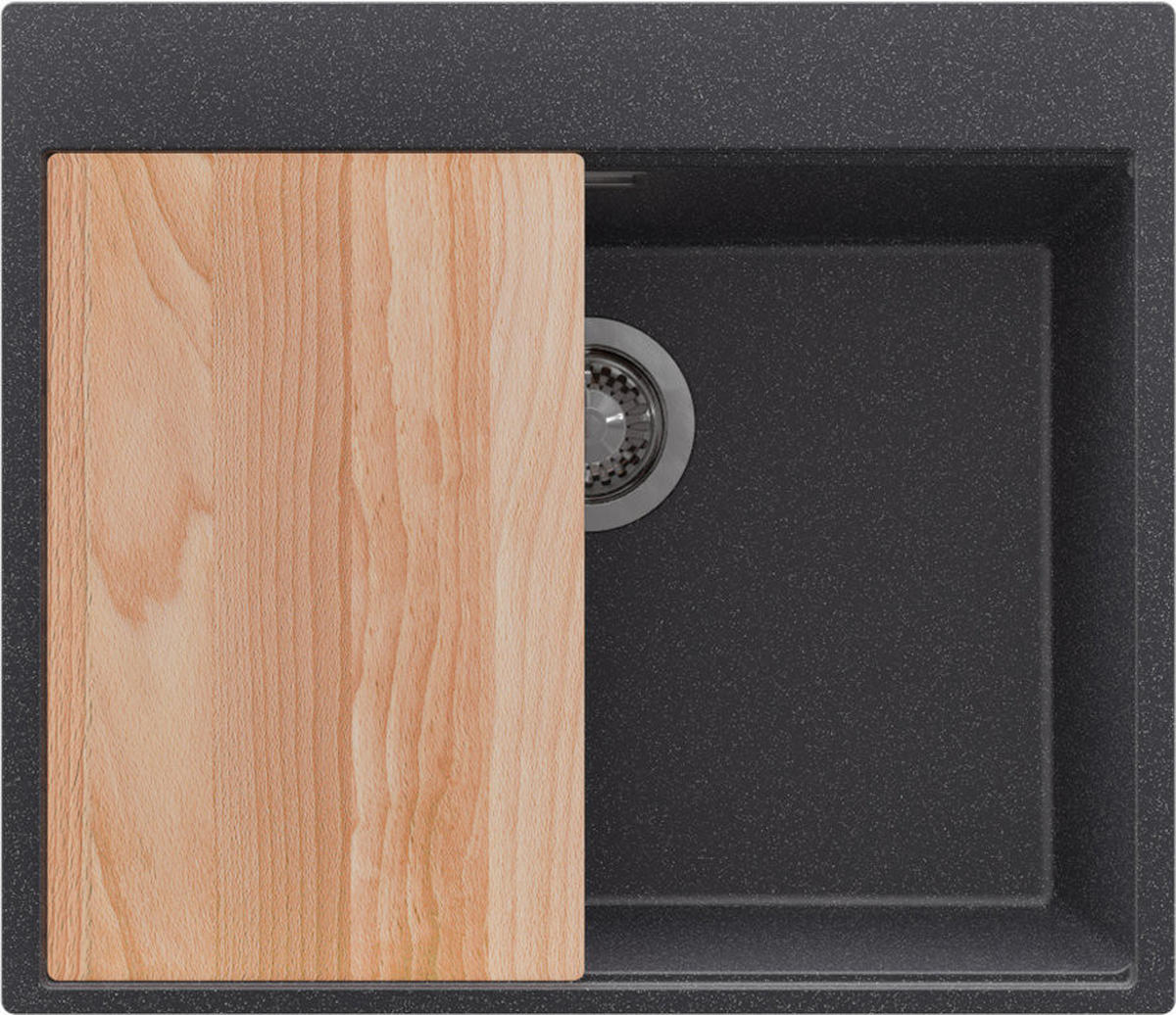 Spüle Oslo 60 Top, komplettes Abflusystem (hochwertiger Siphon, Überlauf, zusätzlicher Abfluss für den Anschluss an Waschmaschine oder Geschirrspüler), Schneidebrett.