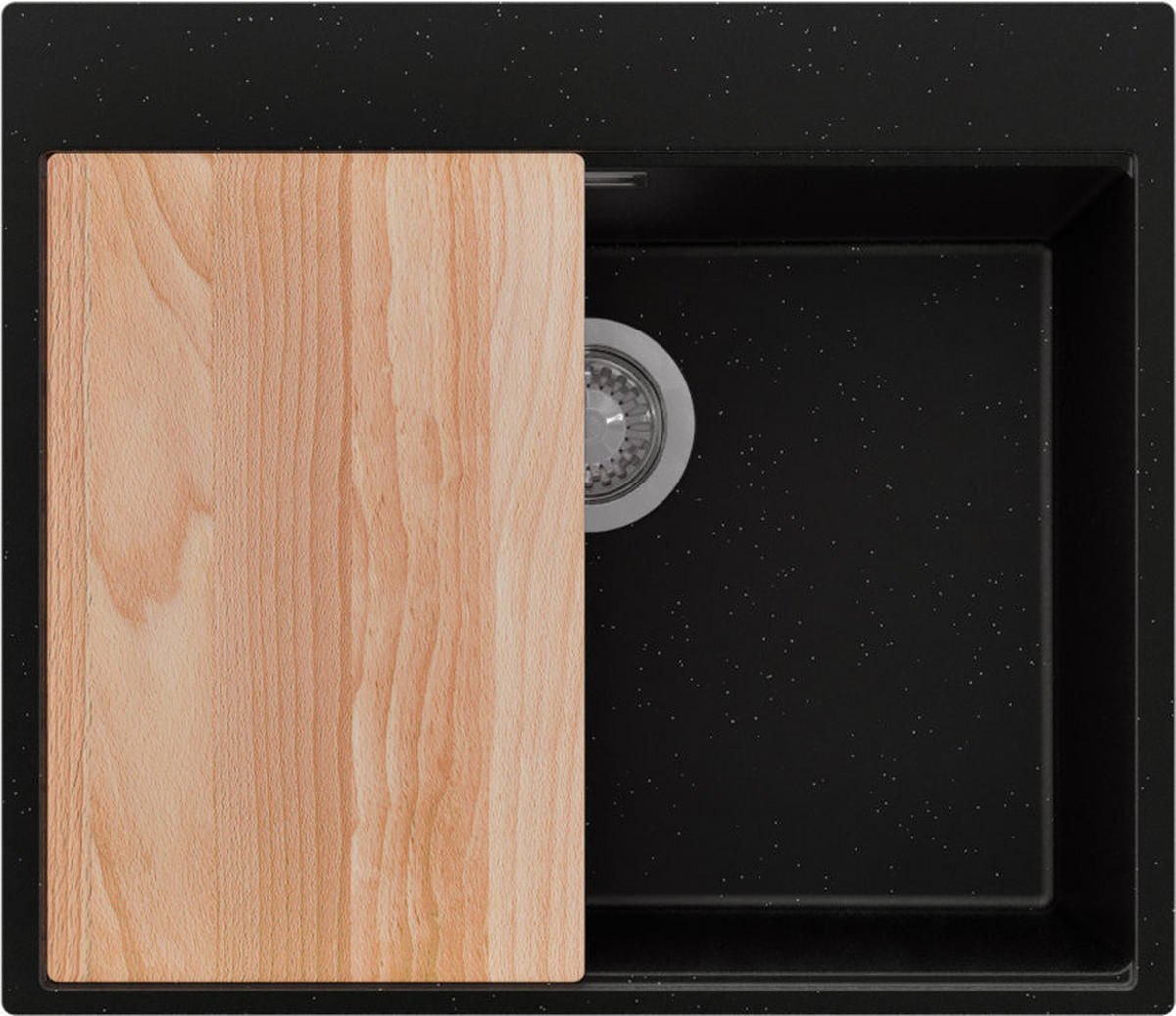 SPÜLBECKEN Oslo, 2-er set Schwarz Metallic 58/50 cm 1 Becken + Ablauf-Set + Schneidebrett ab 60er Unterschrank - Chromfarben/Schwarz Hochglanz, Kunststoff (58/20/50cm) - PrimagranPrimagran