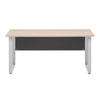 Melaminharz der Güteklasse E1 beschichtet und dadurch besonders robust. Das pulverbeschichtete Gestell vollendet den Tisch nicht nur formschön, sondern garantiert auch eine ausgezeichnete Stabilität. Der Aufbau ist einfach und die Aufbauanleitung sehr leicht verständlich. Der Schreibtisch bietet genügend Platz für Bildschirm und Laptop, sowie Schreibunterlagen.