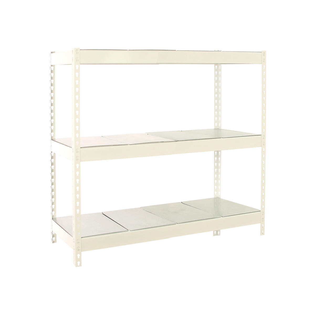 Das Metall ist pulverbeschichtet, um eine lange Lebensdauer sicherzustellen und entgratet, um unangenehme Schnittkanten zu beseitigen. Das Metallprofil der Vertikalstreben hat eine Dicke von 1,5mm und ist damit belastbarer als viele im Handel erhältliche Schwerlastregale.