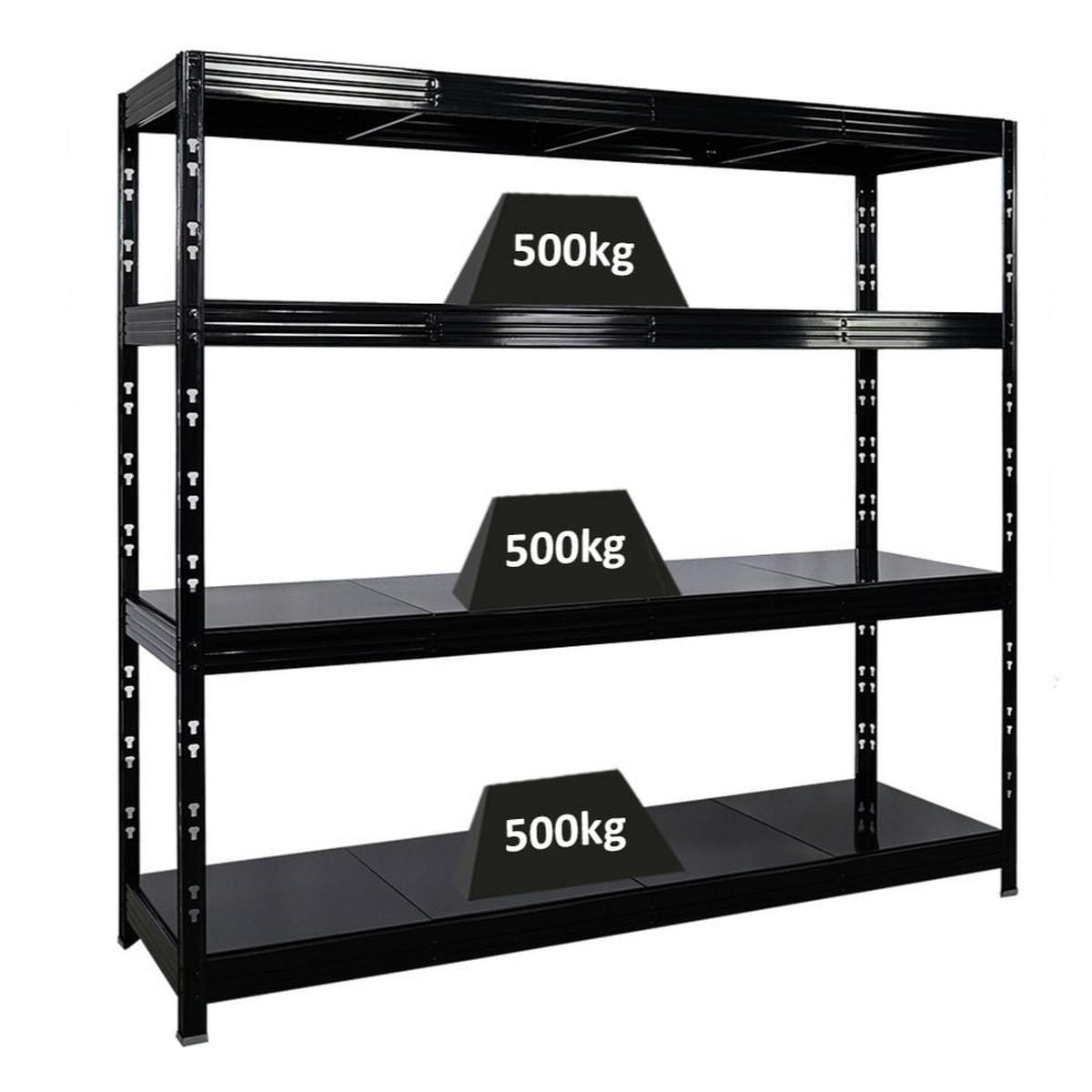 HOHE TRAGLAST - Mit einer Tragkraft von 500kg pro Ebene und einer Gesamttraglast von 2000kg ist das Regal ideal für schwere Lasten. 3 Mittelträger pro Fachboden sorgen für zusätzliche Stabilität.