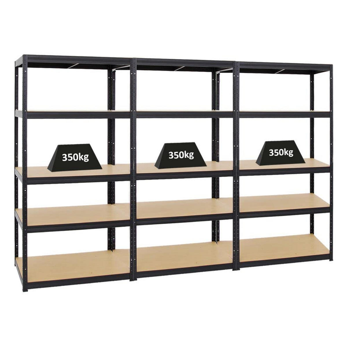 SCHWERLASTREGAL Slim Elephant M 3er-Set mit 3x 180x90x60 cm 5 Ebenen Fachlast 350 kg Schwarz - Schwarz, Metall (270/180/60cm) - PROREGAL