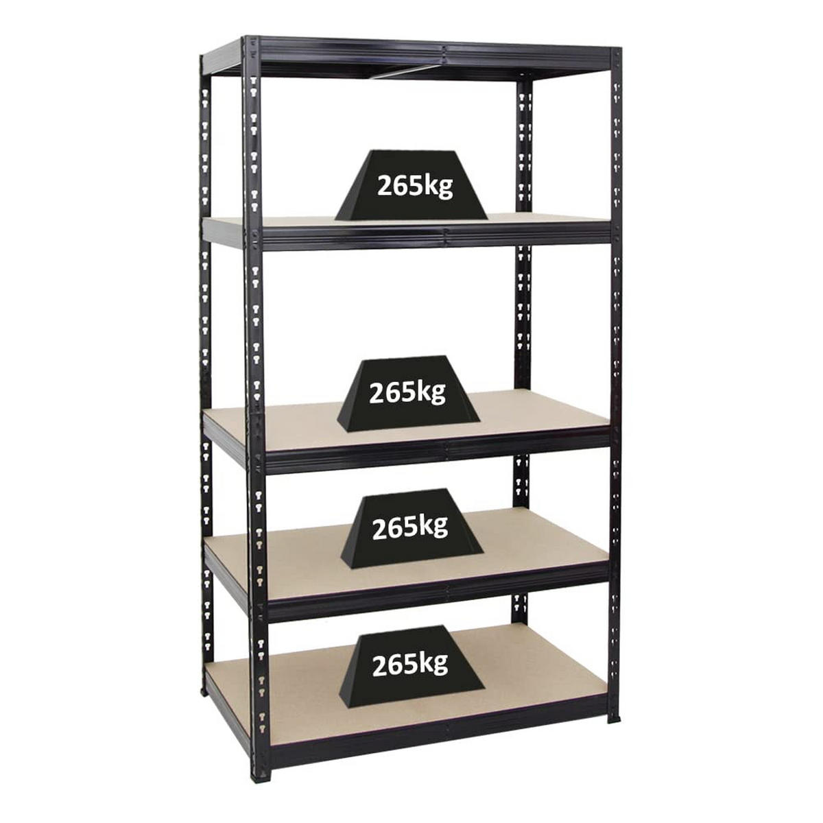 Selbstverständlich sind die 5 Fachböden in der Höhe verstellbar und zwar in einem 8cm Raster. Die Einlegeböden aus Spanplatten haben in Abhängigkeit von der Regalgröße eine Stärke von 5mm bis 10mm und sind belastbar und leicht zu reinigen.