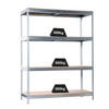4 Fachböden in der Höhe verstellbar und zwar in einem 3,8 cm Raster. Das Schwerlastregal ist in diversen Farben erhältlich. Darüber hinaus sind Räder als Zubehör verfügbar, um das Regal zu einem Rollregal umzubauen.
