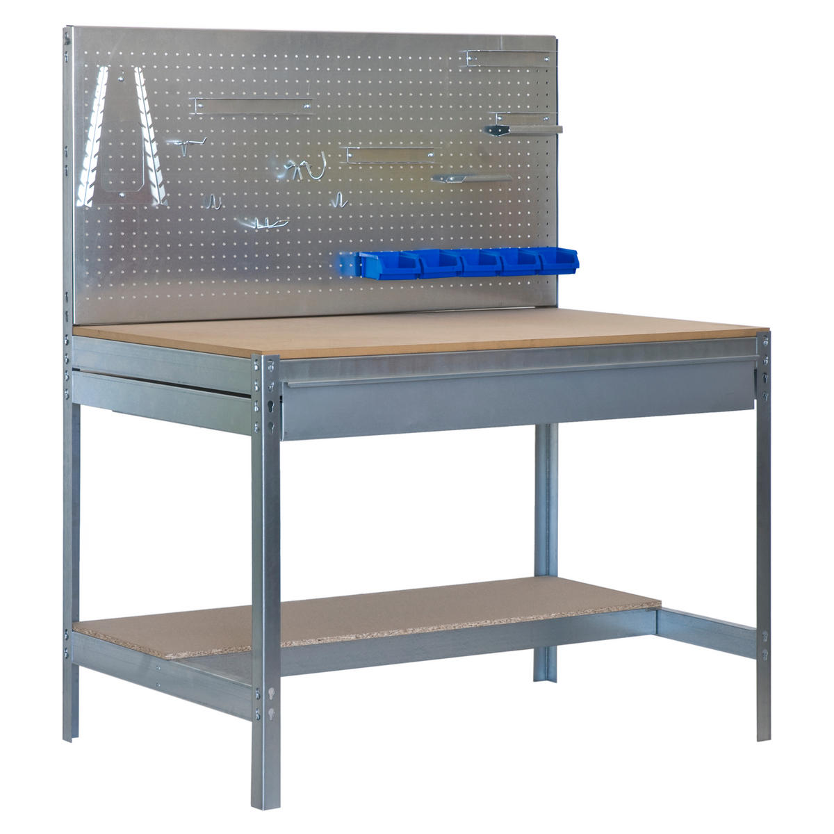 PROREGAL WERKBANK Buffalo mit Werkzeugwand und Schubfach HxBxT 84 x 120 x 61 cm Traglast 600 kg Verzinkt