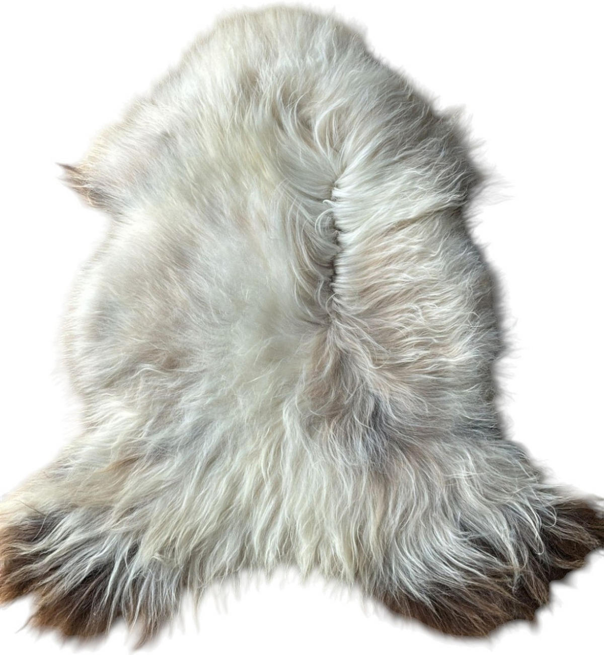 Provellus SCHAFFELL Ganzes Island Lammfell Langhaarig Cremeweiß/Braune Spitzen, ca. 140 cm