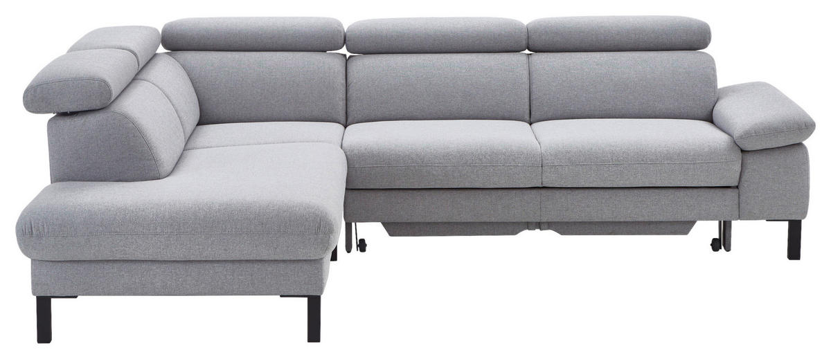Ihr hellgraues Ecksofa mit Flachgewebe-Bezug verführt dazu, behaglich die verdiente Me-Time zu genießen!