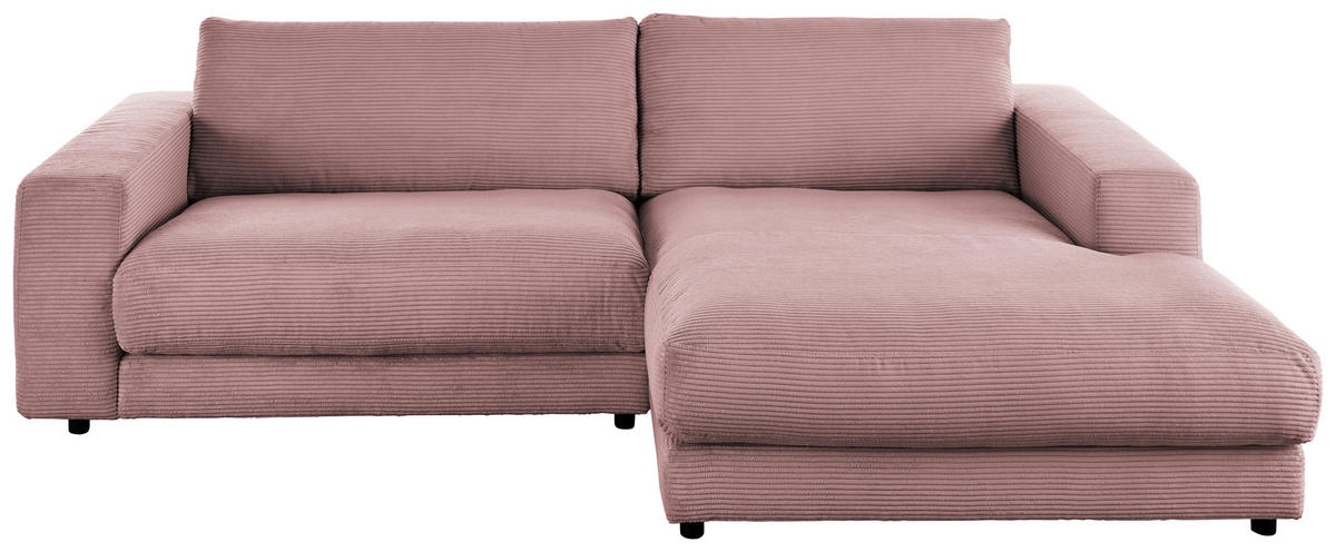 Genießen Sie Ihr Rendezvous mit der wohligen Unbeschwertheit des Seins auf diesem rosafarbenen Ecksofa mit Cord-Bezug!