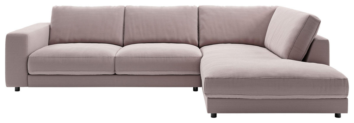 Genießen Sie Ihr Rendezvous mit der wohligen Unbeschwertheit des Seins auf diesem rosafarbenen Ecksofa mit Cord-Bezug!