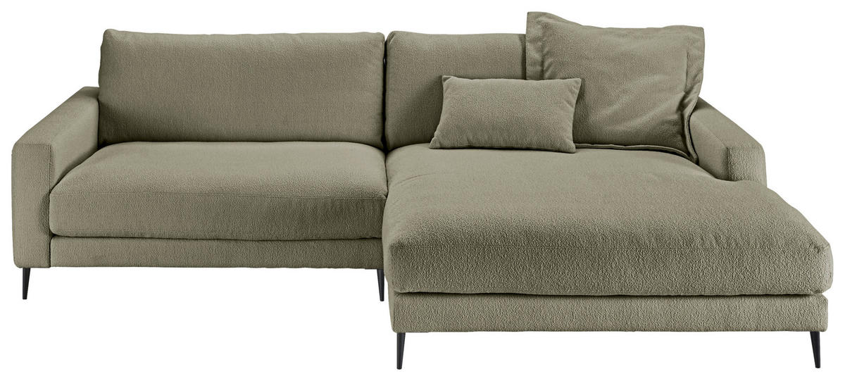 Im Lieferumfang enthalten: Genießen Sie Ihr Rendezvous mit der wohligen Unbeschwertheit des Seins auf diesem grünen Ecksofa mit Flachgewebe-Bezug!