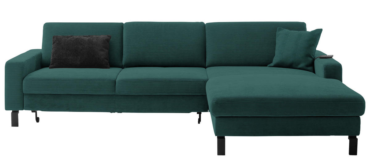 Wo eine ausgeglichene Life-Balance und häusliches Wohlempfinden gefragt sind, führt an diesem dunkelgrünen Ecksofa mit Cord-Bezug kein Weg vorbei!