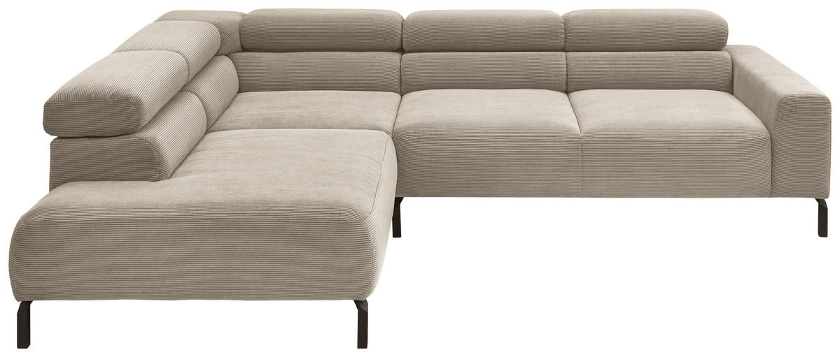 Ihr Aushängeschild, was Behaglichkeit anbelangt: ein sandfarbenes Ecksofa mit Feincord-Bezug, das es in sich hat!