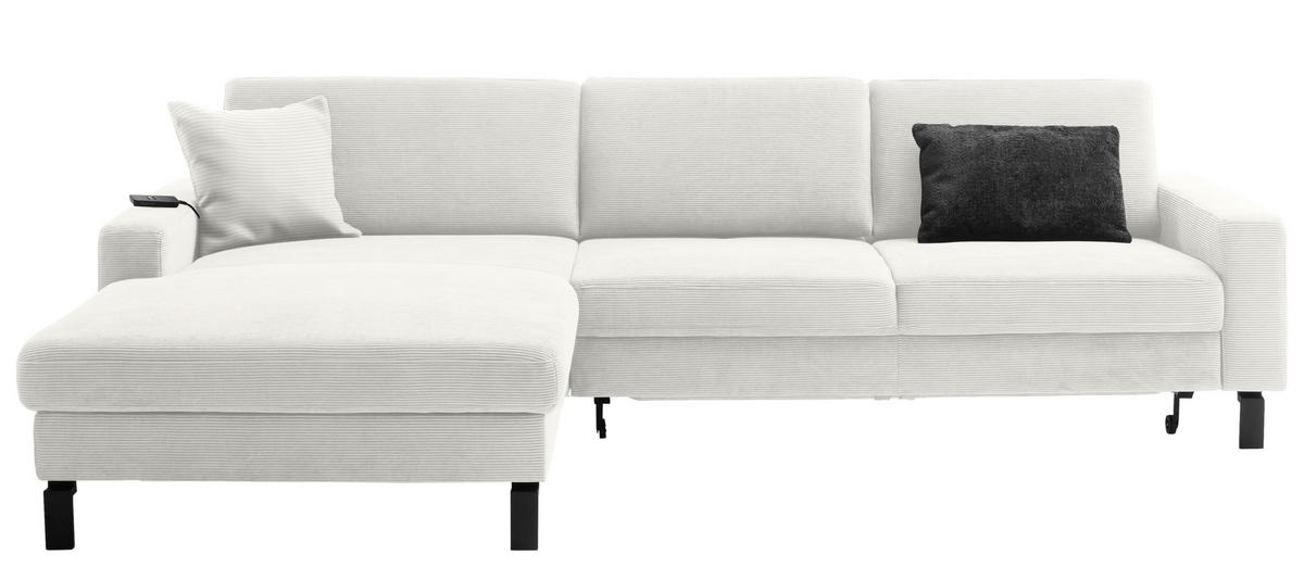 Stellen Sie mit diesem weißen Ecksofa mit Cord-Bezug die Weichen für Behaglichkeit!