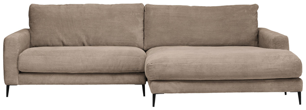 Im Lieferumfang enthalten: Mit diesem taupefarbenen Ecksofa mit Cord-Bezug landen Sie auf jeden Fall einen Volltreffer in Sachen Wohnidylle!
