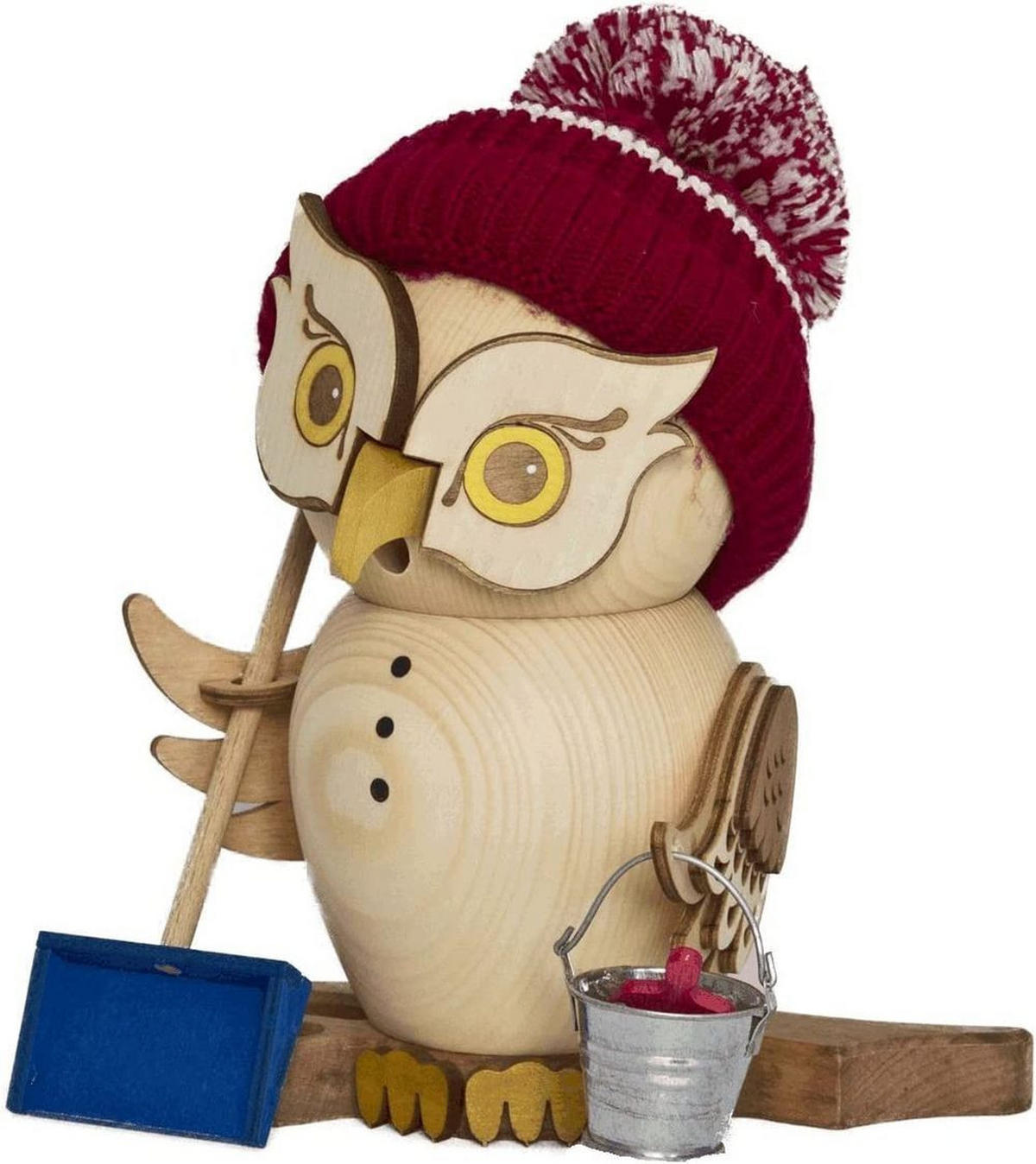 RÄUCHERFIGUR Eule mit Schneefeger 15 cm