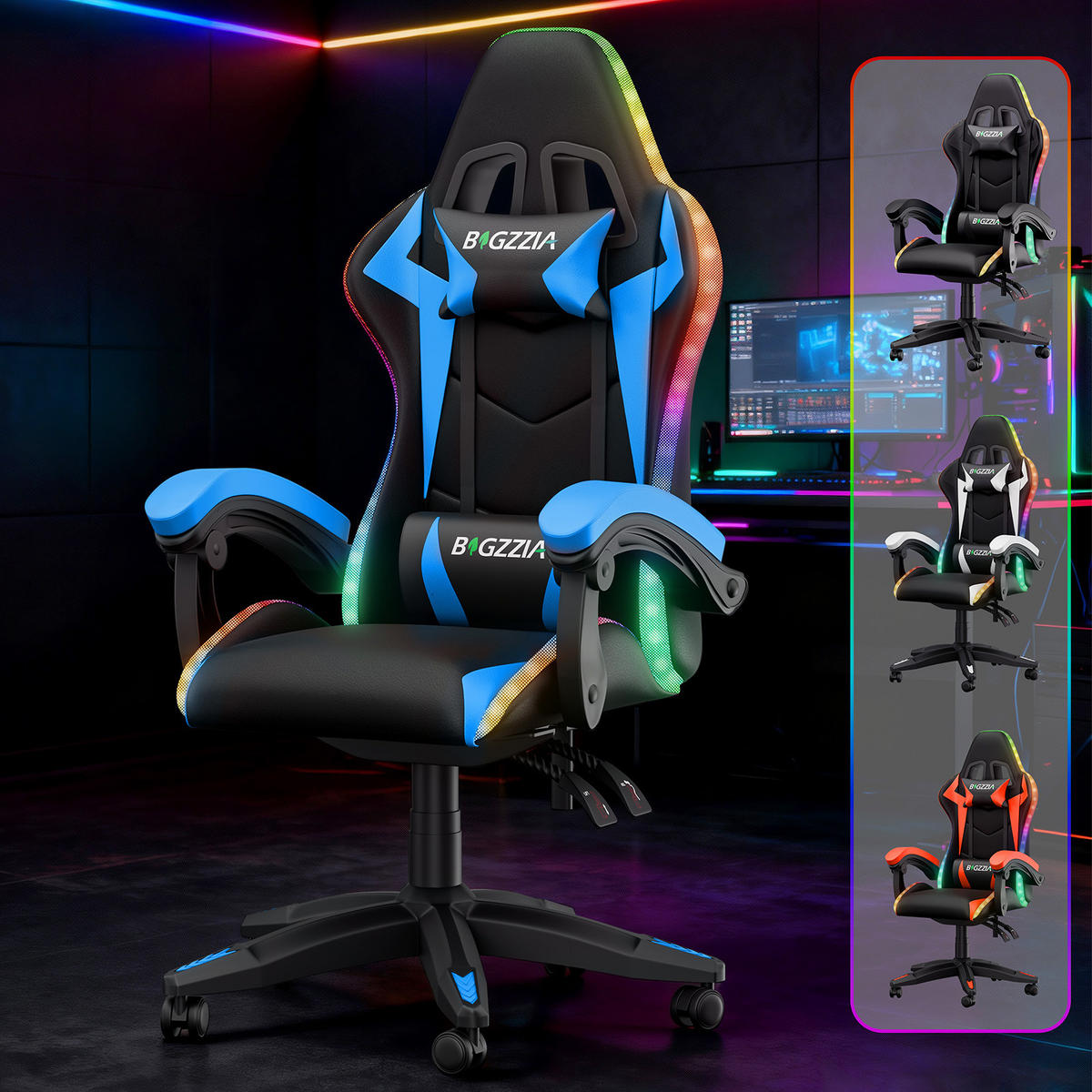 GAMINGSTUHL Schwarz-Blau,mit Led,Leder, Metall - Blau, Leder (29/59/79cm) - RattrixRattrix