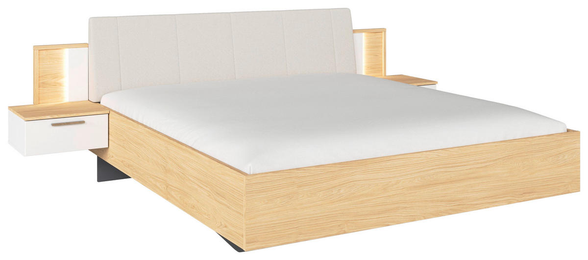 Cozy RAUCH Bettanlage (180 x 200 cm) in Eichefarben & Weiß mit Nachtschrank