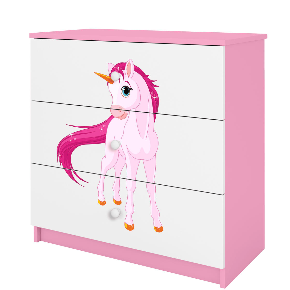 BABYDREAMS Kinderkommode mit Motiv Einhorn in der Farbe Rosa – Praktische Lösung für das Kinderzimmer.