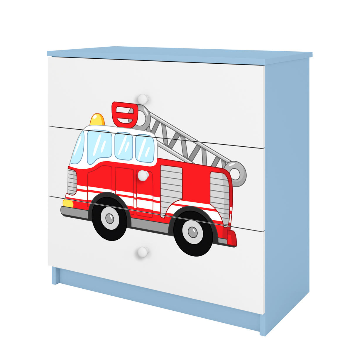 BABYDREAMS Kinderkommode mit Motiv Löschzug in der Farbe Blau – Praktische Lösung für das Kinderzimmer.