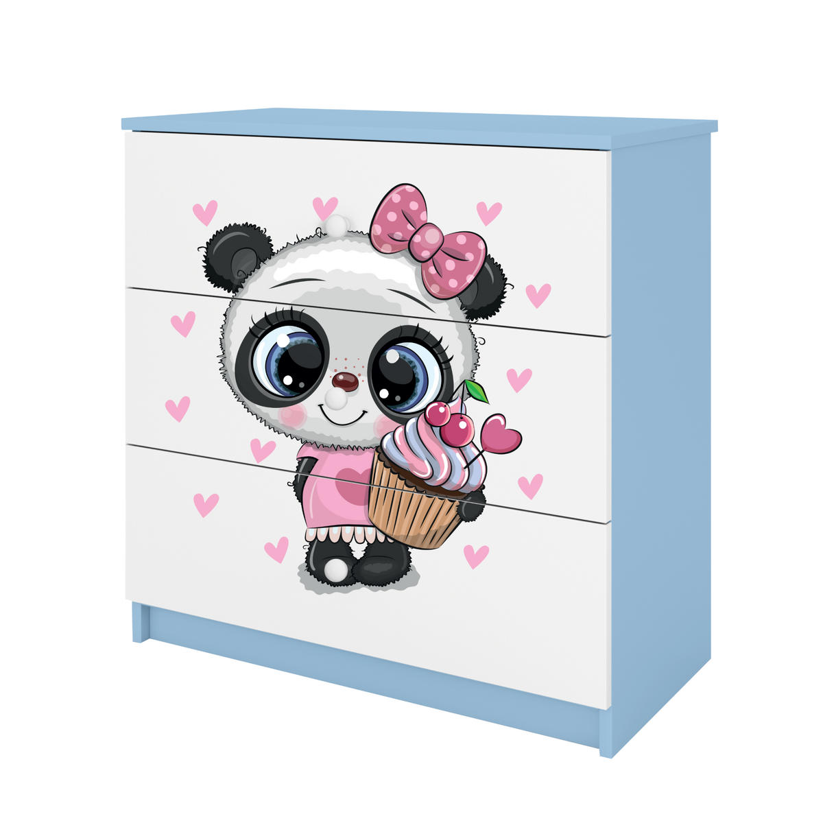 BABYDREAMS Kinderkommode mit Motiv Panda in der Farbe Blau – Praktische Lösung für das Kinderzimmer.