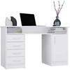 Ausgestattet mit 4 Schubladen sowie einem Schrank mit Tür und 2 Ablagen bietet er viel Stauraum für Dokumente, Bücher und Büroaccessoires. Eine zusätzliche offene Ablage unter der Tischplatte eignet sich ideal für Laptop, Hefte oder kleine Gegenstände.