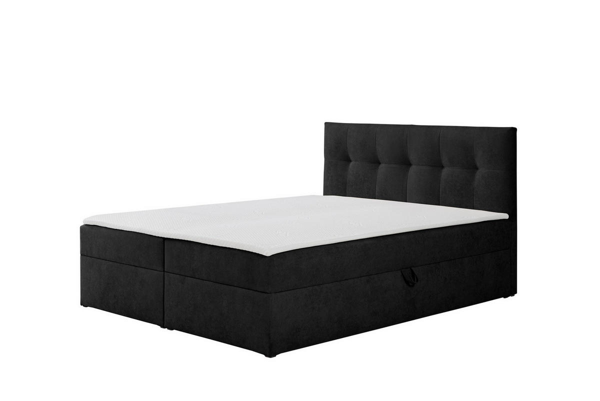 Entdecken Sie die perfekte Kombination aus Eleganz und Funktionalität - das kontinentale Bett Toronto aus hochwertigem Gerra 75-Stoff in Schwarz passt in jedes moderne Schlafzimmer und verleiht ihm eine gemütliche und anspruchsvolle Note. Ideal für ein geräumiges Schlafzimmer im modernen oder skandinavischen Stil, ist es ein wahrer Luxus für die tägliche Entspannung.