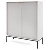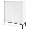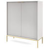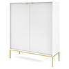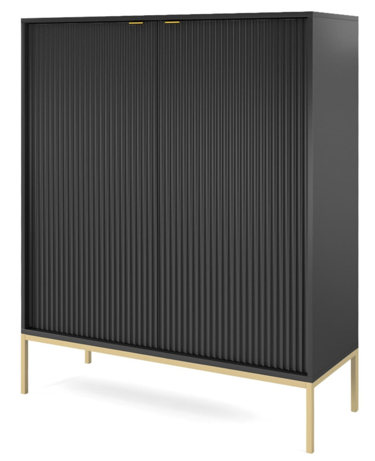 Hohe Kommode Kioto 125 cm – moderne Form mit geriffelter Front Die geriffelte Front dieser Kommode ist ein echter Blickfang – sie zieht die Blicke auf sich und verleiht dem Möbelstück einen ausdrucksstarken Charakter. Die goldenen Griffe aus gebürstetem Aluminium sorgen für einen Hauch von Eleganz, während die matte Oberfläche dem Ganzen einen exklusiven Stil verleiht. Dank ihrer erhöhten Höhe und zwei geräumigen Schränken eignet sich die Kommode perfekt für Räume, in denen Sie nicht nur Schönheit, sondern auch praktischen Stauraum benötigen. Sie passt problemlos in Ihr Wohnzimmer, Schlafzimmer oder sogar in ein elegantes Büro.