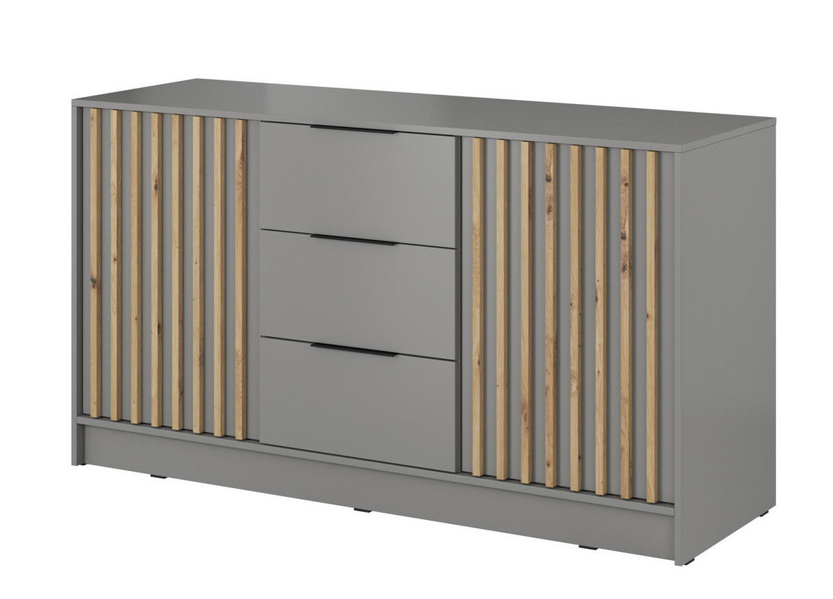 Ravio KOMMODE Stilo 155 cm in Grau + Lamellen aus Artisan-Eiche