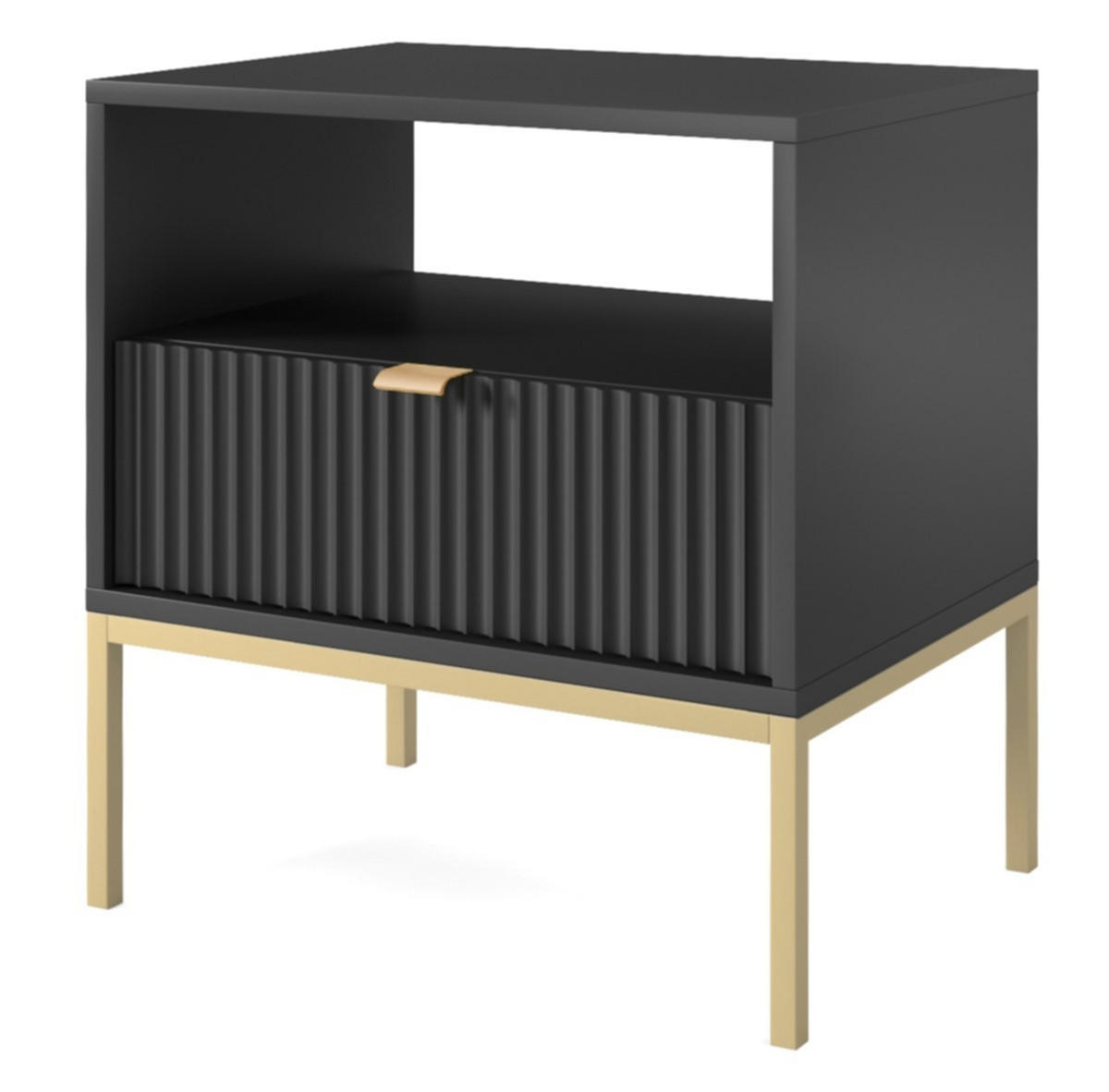 Ravio NACHTTISCH Kioto in Schwarz mit goldenen Beinen + goldener Griff mit geriffelter Front