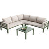 sorgen die ergonomisch hohe Rückenlehne sowie 10 cm starke Sitzkissen. Praktisch im Alltag: Die Kissenbezüge sind mit Reißverschluss ausgestattet und lassen sich zum Reinigen abnehmen. Auf unebenen Böden bieten verstellbare Füße an Tisch und Sofa