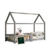 Redom KINDERBETT Hausbett 90/200 cm mit Tafel, Lattenrost und Rausfallschutz aus Kiefernholz, Grau