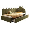 Redom KINDERBETT Kindereinzelbetten 90/200 cm mit Ausziehbett 90/190 cm, L-Form, Kronen- und Gitterdesign aus Samt, Grün