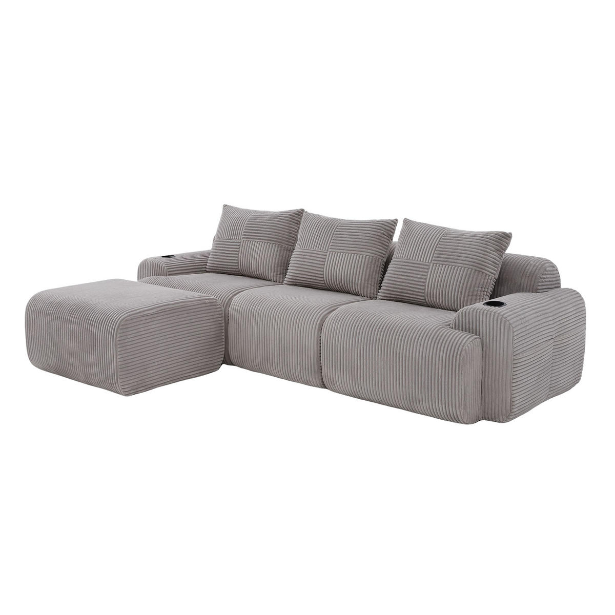 Das REDOM modulare 3-Sitzer Sofa aus hochwertigem Cordstoff verbindet eine angenehm weiche Haptik mit einer warmen, modernen Optik. Die markante Struktur des Bezugs bringt Ruhe und Wohnlichkeit in den Raum und passt sich dank klarer Linienführung unterschiedlichen