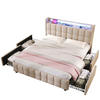 Im Alltag überzeugt das Bett mit hoher Funktionalität. Am Kopfteil befinden sich 2 EU-Steckdosen und 2 USB-Anschlüsse, damit Smartphone oder Tablet bequem am Bett geladen werden können. Vier geräumige Schubladen auf Rollen bieten zusätzlichen Stauraum für Bettwäsche, Decken oder Kleidung und lassen sich leicht aus- und einschieben.