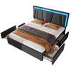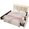 Die Kombination aus höhenverstellbarem Kopfteil, LED-Beleuchtung mit Fernbedienung und vier geräumigen Schubladen macht das Bett besonders alltagstauglich. Unterschiedliche Farben und Helligkeiten lassen sich bequem anpassen. Die Schubladen bieten praktischen Stauraum für Bettwäsche, Kissen oder saisonale Textilien.