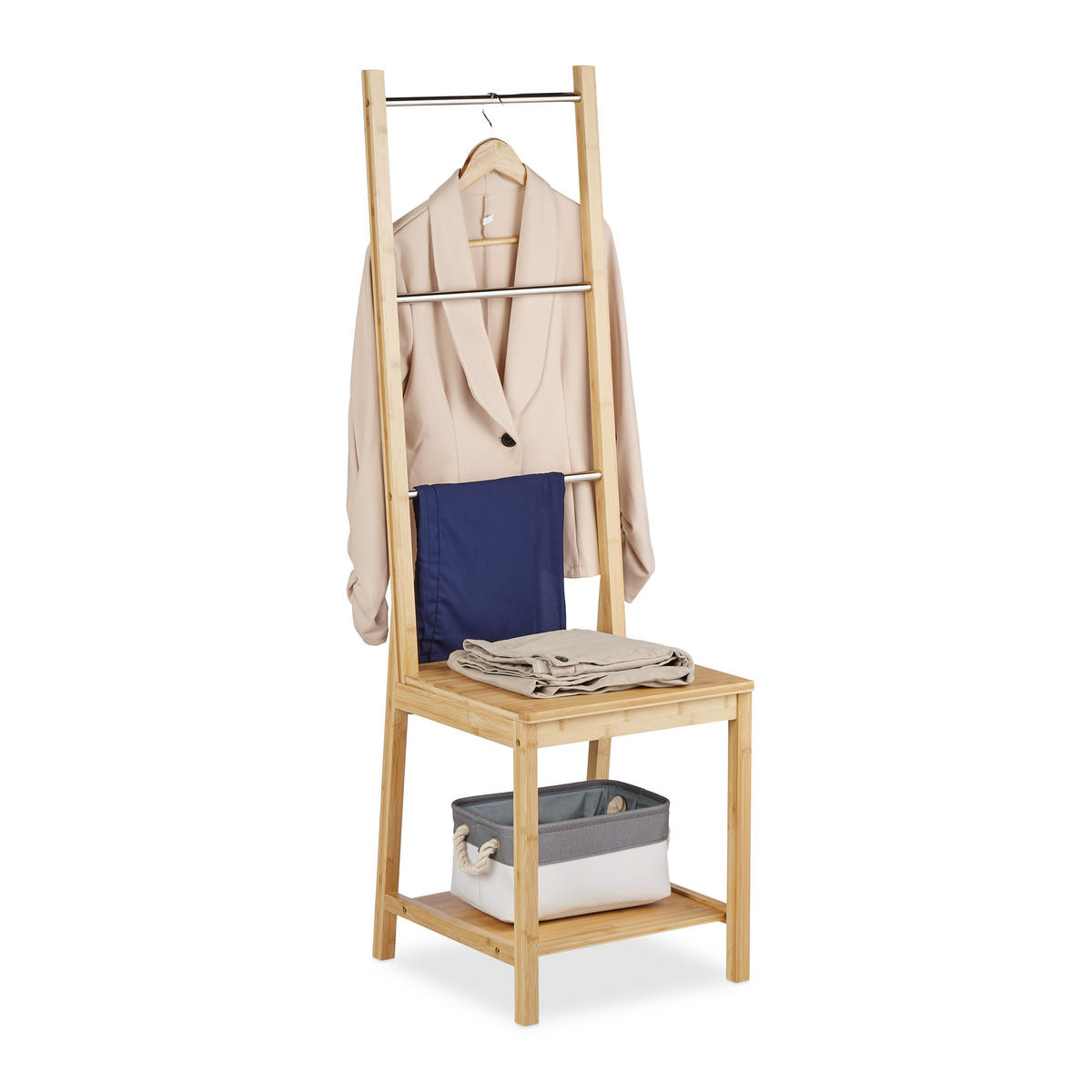 HERRENDIENER - Hellbraun, Holz/Metall (40/133/42cm) - RelaxdaysRelaxdays