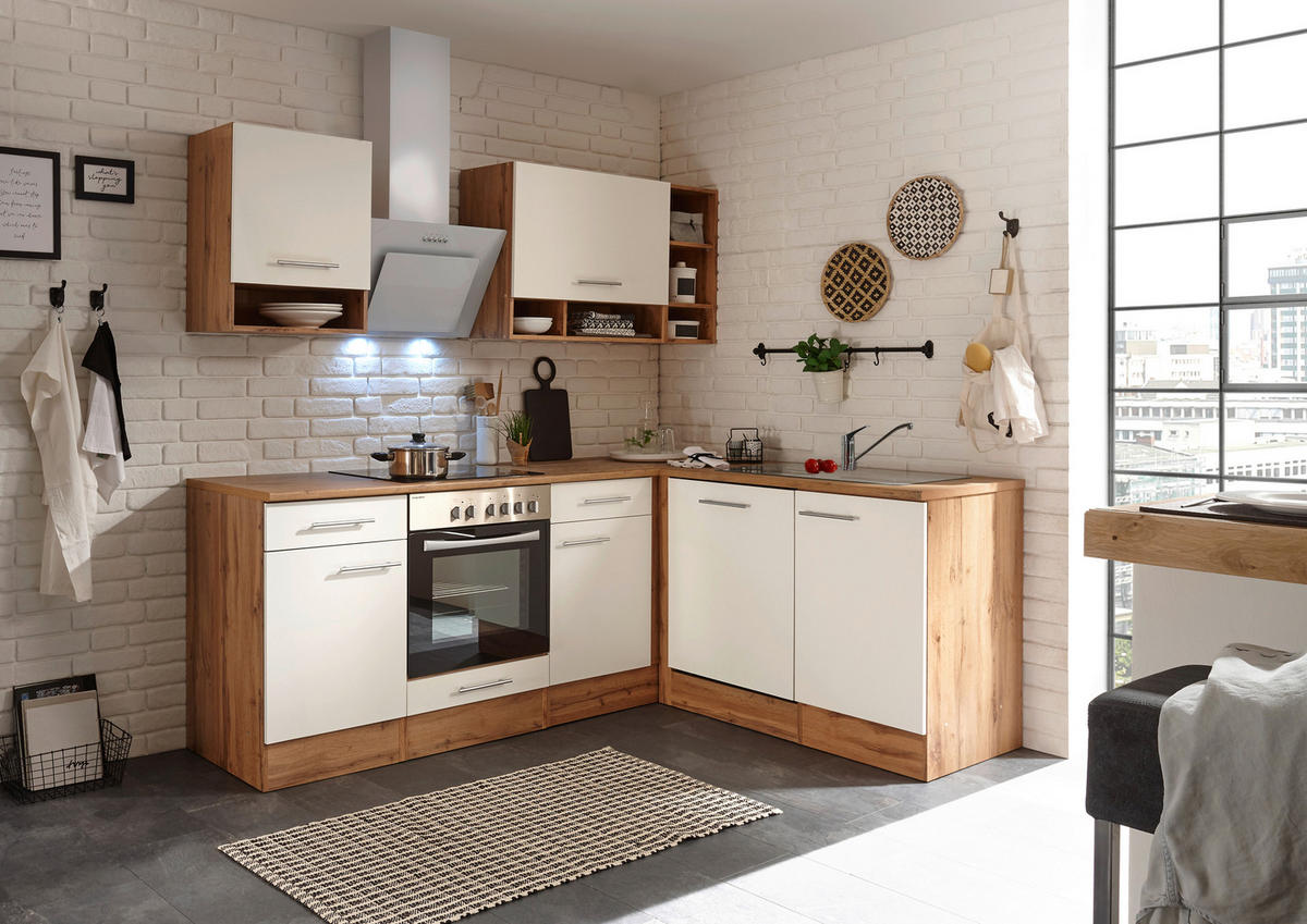 Respekta ECKKÜCHE 220/172 cm in Weiß, Eichefarben